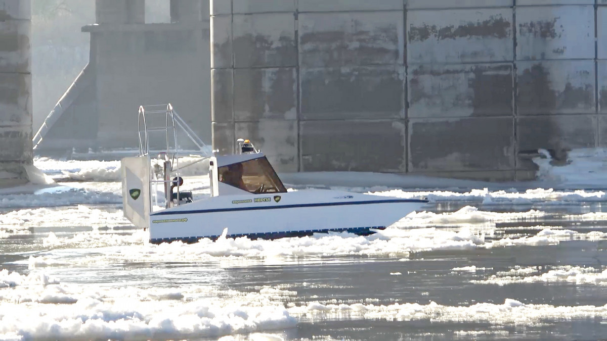 Несомненный плюс модели - аппарель в носовой части, которая может опускаться в воду и подниматься с воды, что важно для безопасной и комфортной работы водолазов. Также аппарель позволяет осуществлять загрузку техники и пострадавших непосредственно со льда.